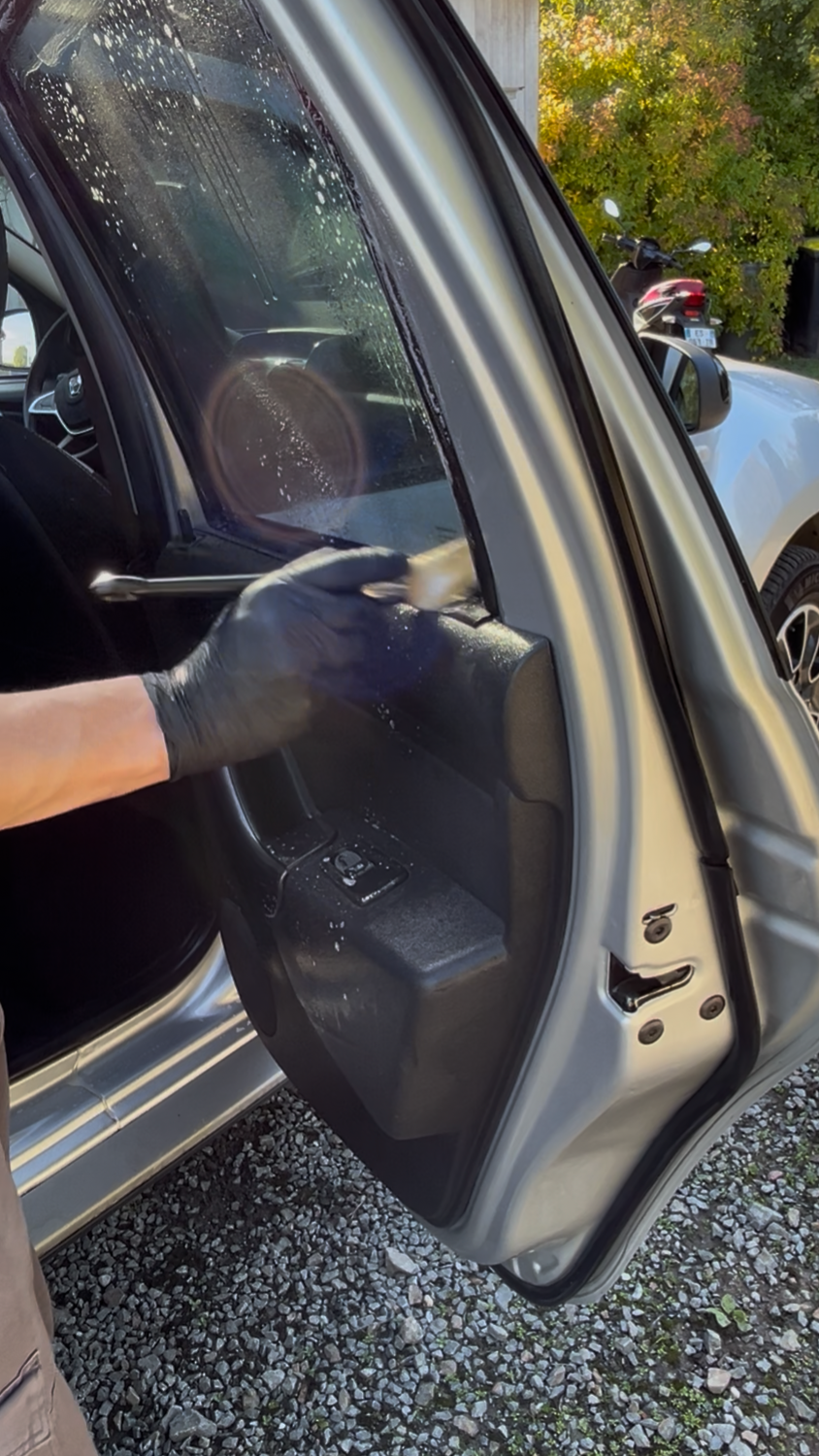 Aspiration complète de l’intérieur du véhicule, nettoyage de l’ensemble des plastiques et lavage des vitres.
